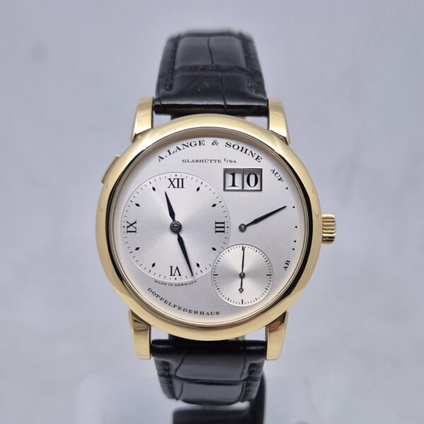 to ikona niemieckiego zegarmistrzostwa i jedna z najbardziej rozpoznawalnych luksusowych zegarków na świecie. Koperta z 18-karatowego żółtego złota o średnicy 38,5 mm skrywa manufakturowy mechanizm z ręcznym naciągiem L901.0, oferujący imponującą 72-godzinną rezerwę chodu. Charakterystyczna, asymetryczna tarcza z dużą datą (Outsize Date) oraz wskaźnikiem rezerwy chodu podkreśla unikalny styl kolekcji Lange 1.